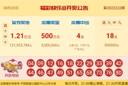 恭喜昨日福建中出选十头奖1注,奖池金额2亿