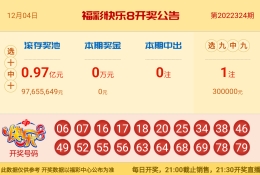 恭喜昨日浙江出选十头奖1注,奖池金额0.31亿 。