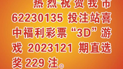 武威彩民一人独揽福彩“3D”大奖23.81万元