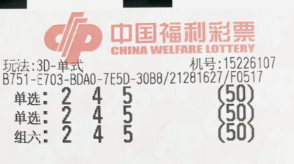 福彩3D游戏第2023072期开奖,开奖号码为2-4-5。兴安盟彩民王...