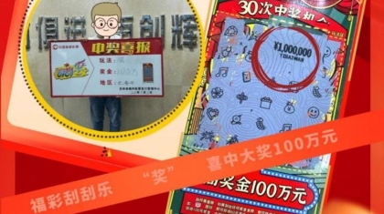 重庆江北彩民领走刮刮乐“奖”100万元!