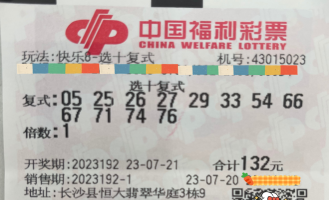 7月21日,“快乐8”游戏第2023192期开奖,哈尔滨购彩者喜中...