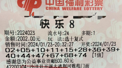 快乐8大奖出自一张快乐8选七玩法复式彩票,大奖得主是八位忠...
