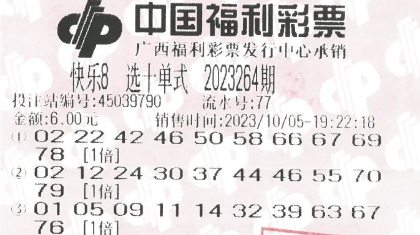 快乐8游戏第2023297期开奖,广西彩友喜中1注“选十中十”头...