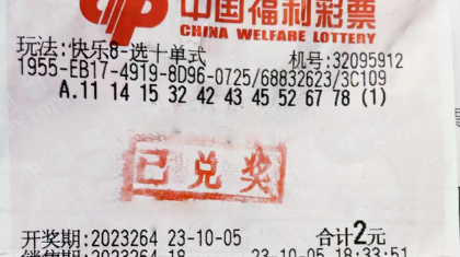 1000万元!泉州丰泽区购彩者机选快乐8 喜提2注选十中十