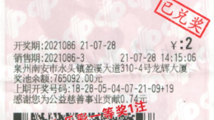 7月28日晚开奖的福彩七乐彩第2021086期,全国仅开出1注一等...