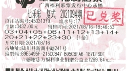 “第一次买七乐彩,没想到竟然中了大奖!”8月2日晚,七乐彩...