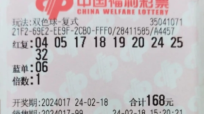 2月18日晚,中国福利彩票双色球第2024017期开奖,当期全国中...