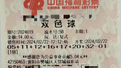 中国福利彩票双色球2024019期,襄阳购彩者喜中二等奖一注,...