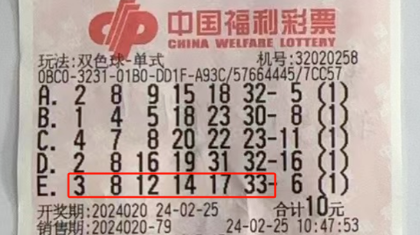 ?2月25日晚开奖的福彩双色球第2024020期,福建收获3注二等...