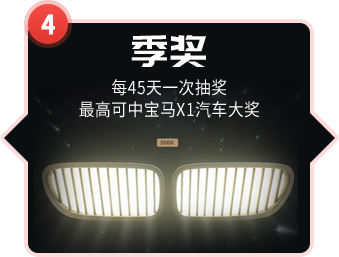| 季奖入围 | 2019年10月17日 | 最高赢取宝马 X1一辆 |