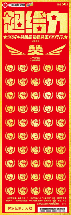 面值:50元 | 最高奖金:100万元