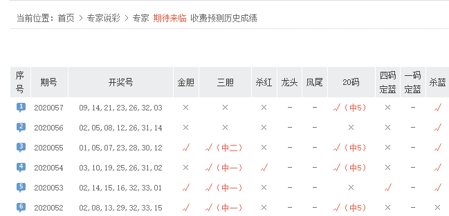 期待来临最近6期4次命中5红!中彩红手、买彩赢利是真理、幸有淡然、彭宇强、财气横益、金色燕子、双色基金大厦等多位名家均命中5红。