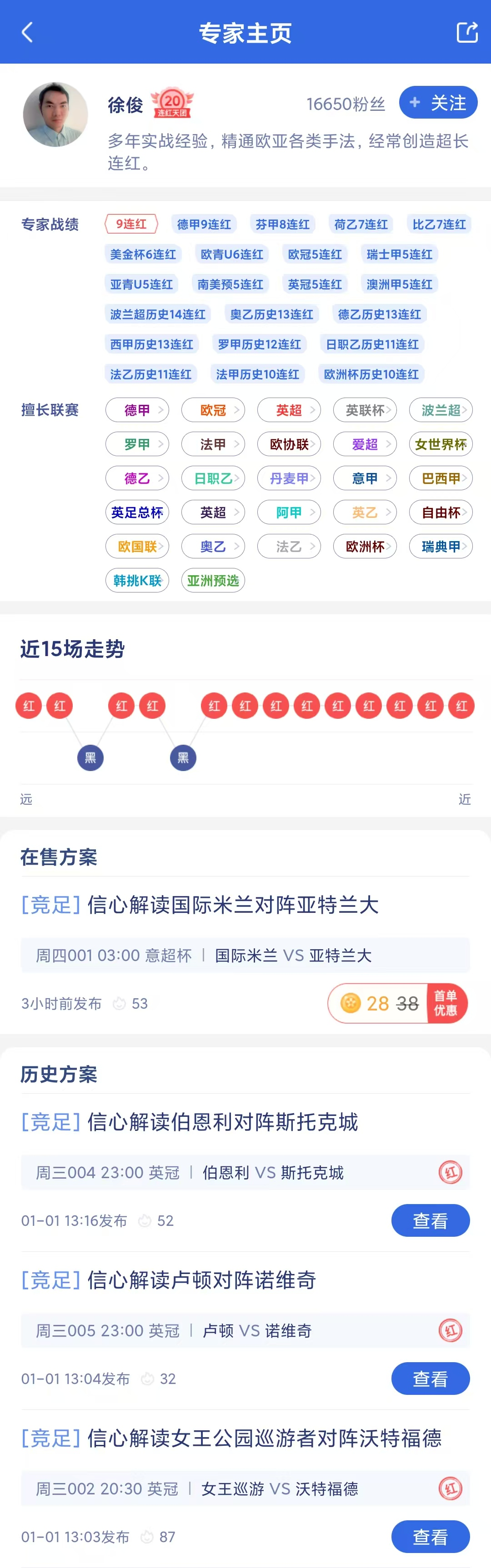 竞彩专家“徐俊”昨日3场推荐全部命中,成功拿下9连红!今日最新方案已出,冲击10连红!