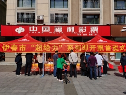 伊春市福彩中心举行“超给力”系列即开票首卖式活动