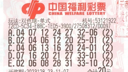 11月19日,中国福利彩票双色球第2024133期开奖,当期全国共...