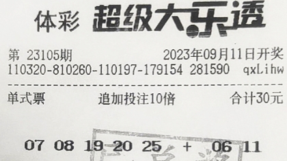 6月25日,超级大乐透第25071期开出中奖号码,前区“01、08、...