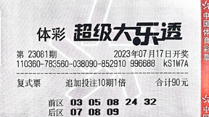 10元随机票中得大乐透头奖