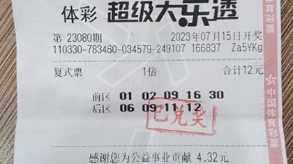 苏州夫妻兑换零钱随手购彩 喜中大乐透二等奖