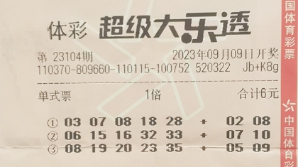 9月3日,体彩超级大乐透第25101期开奖,日照一位购彩者以一...