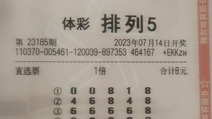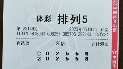5月12日,体彩排列5第24123期开奖,中奖号码为“53858”。全...