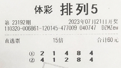 小彩票大幸运 济南购彩者收获排列5奖金30万