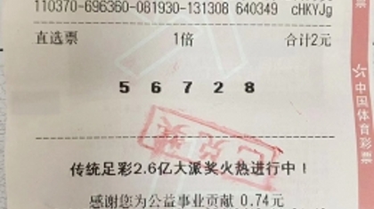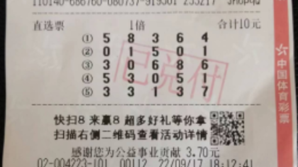 山西省大同幸运购彩者凭借一张180元的90倍单式倍投票,成功...
