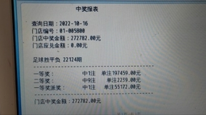 10月10日,第22120期足彩“14场胜负”玩法开奖,位于绍兴市...